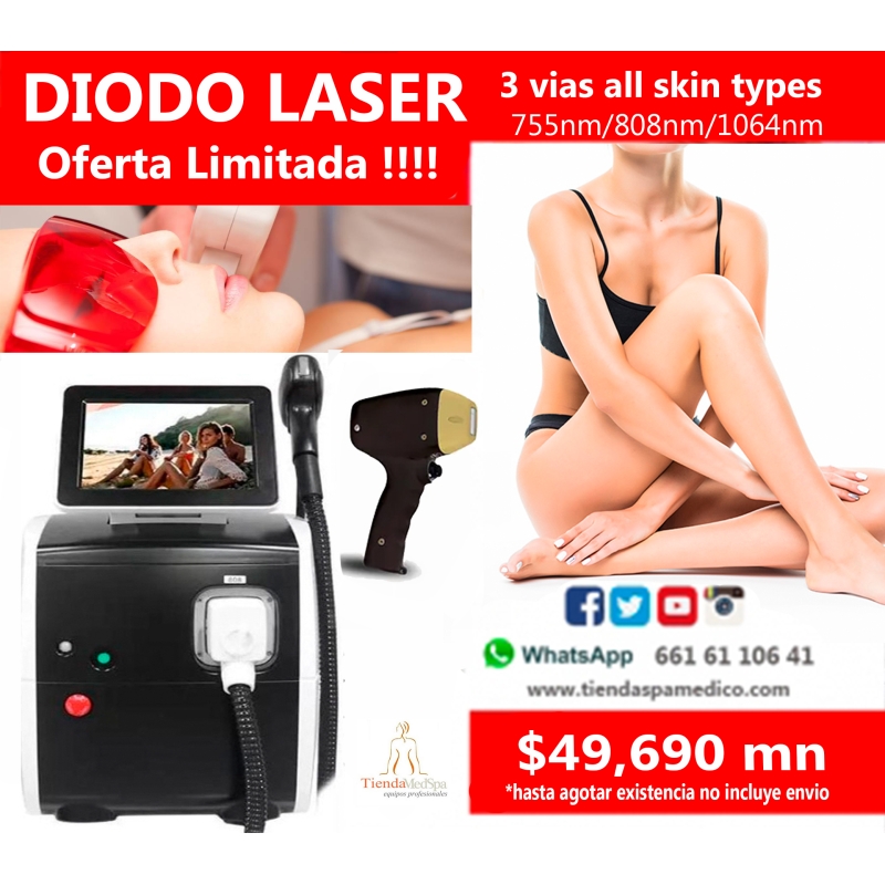 Láser de diodo de 808 nm La mitad del tiempo de tratamiento realiza más sesiones de tratamiento en menos tiempo, lo que le permite tratar rápidamente áreas más grandes, al tiempo que ofrece a sus pacientes las sensaciones de depilación más rápidas y efectivas. Láser de diodo 1064nm Nueva experiencia para la depilación especializada de pieles más oscuras de manera segura. El tratamiento de láser de 1064nm brinda  rejuvenecimiento de la piel, buen rendimiento, una función de enfriamiento de potencia fuerte, tratamiento cómodo y seguro. Láser de diodo 755nm El láser de diodo de 755 nm más popular que reemplaza al láser de diodo de alejandrita de estado sólido y tiene un tratamiento más cómodo. Es eficaz para que la melanina absorba el láser de diodo de 755 nm. Esta característica es buena para la depilación de vellosidades cuando las personas usan un mango de tratamiento con láser de diodo de 755 nm. Y el tiempo de tratamiento es cada vez más corto.