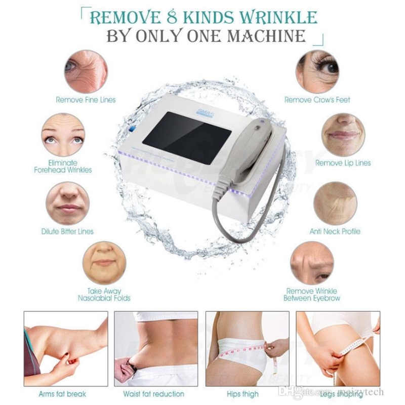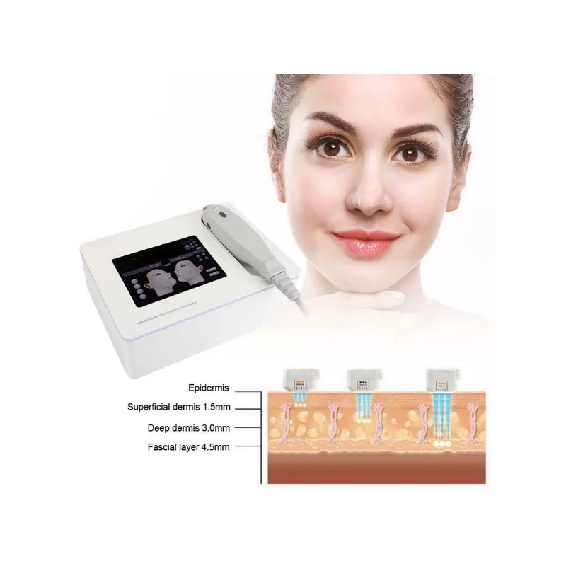 2. Utilizando la tecnología ultrasónica más nueva para transmitir ultrasonido enfocado de alta energía a la piel, dirigir la capa subcutánea SMAS, eliminar las arrugas;
