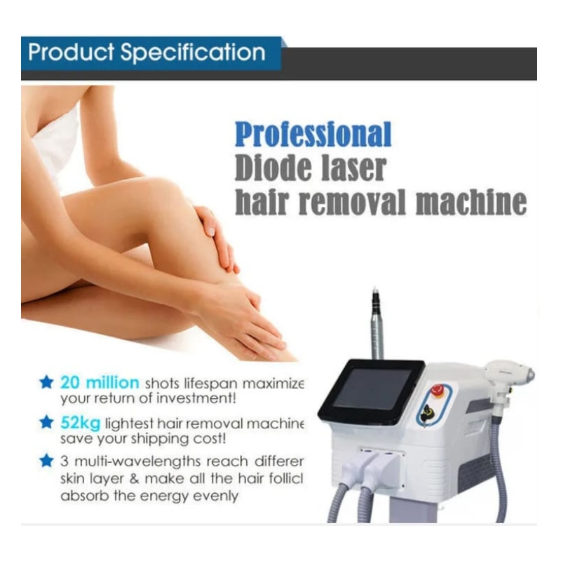 El sistema de depilación láser semiconductor de 808 nm utiliza su exclusivo láser de ancho de pulso largo para penetrar la epidermis hasta el cabello.
