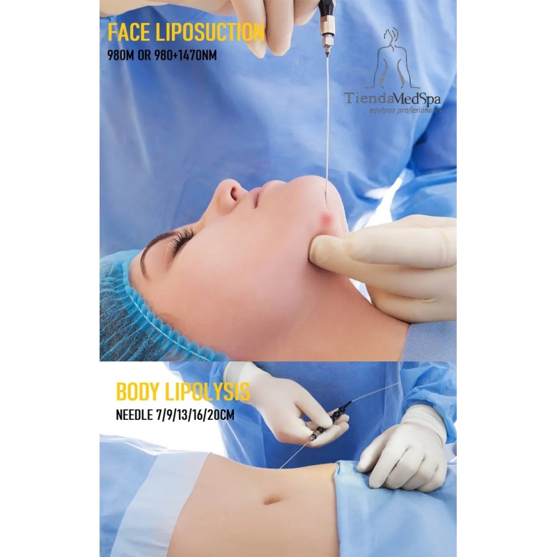 El Dispositivo de terapia con láser semiconductor utiliza un láser acoplado de fibra de longitud de onda de 980nm para tratar la aguja con una fibra de lipólisis desechable, localiza con precisión el exceso de grasa en el cuerpo, golpea directamente las células grasas del tejido objetivo y se disuelve y licua rápidamente. El instrumento actúa principalmente sobre la grasa profunda y superficial, y transfiere la energía directamente a las células grasas para un calentamiento uniforme. Durante el proceso de calentamiento, el tejido conectivo y la estructura celular de la grasa se pueden cambiar controlando el calor, y el tejido adiposo tiene un efecto fototérmico (de modo que la grasa se disuelve). Y el efecto fotodinámico (que separa las células grasas del tejido normal) descompone las células grasas para licuarlas uniformemente, y el líquido graso se excreta a través de la aguja de posicionamiento ultrafina, que reduce fundamentalmente el número de células grasas, evita eficazmente el rebote postoperatorio.