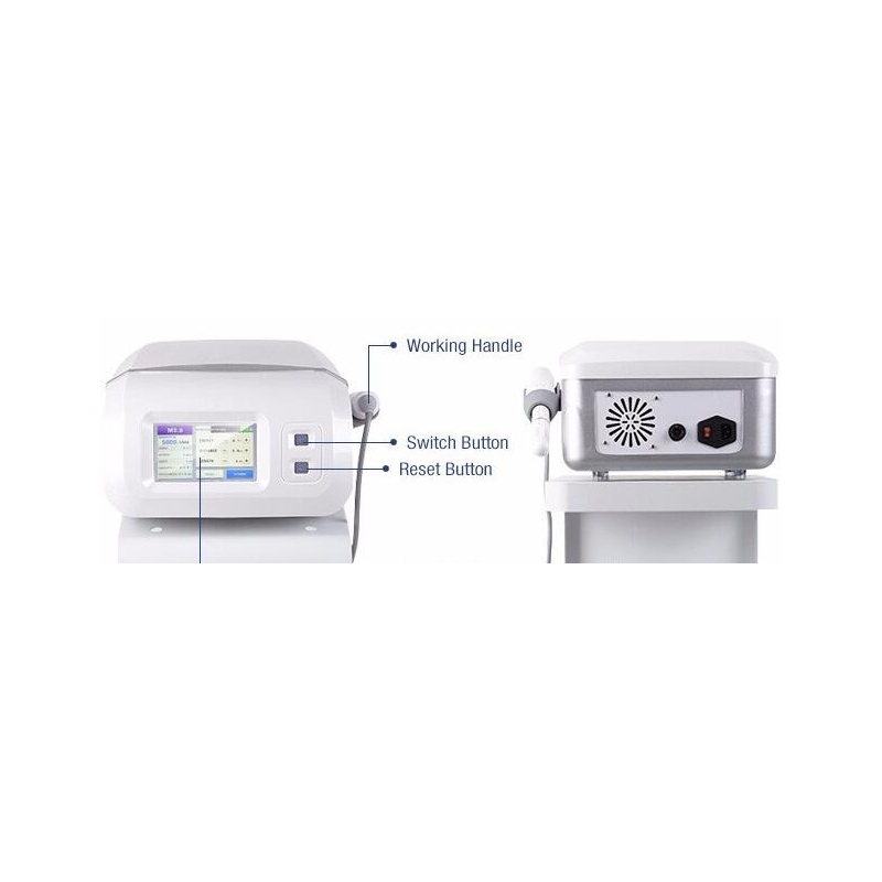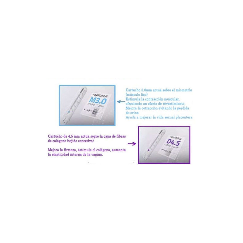 3.Tiene efecto del calor sobre colágeno dérmico y fibras de colágeno, así como estímulo térmico en la capa de grasa y SMAS, cuyo efecto es el tratamiento más que el Thermage. 3,0 mm, 4,5 mm Traductores con 10500 disparos cada una.
