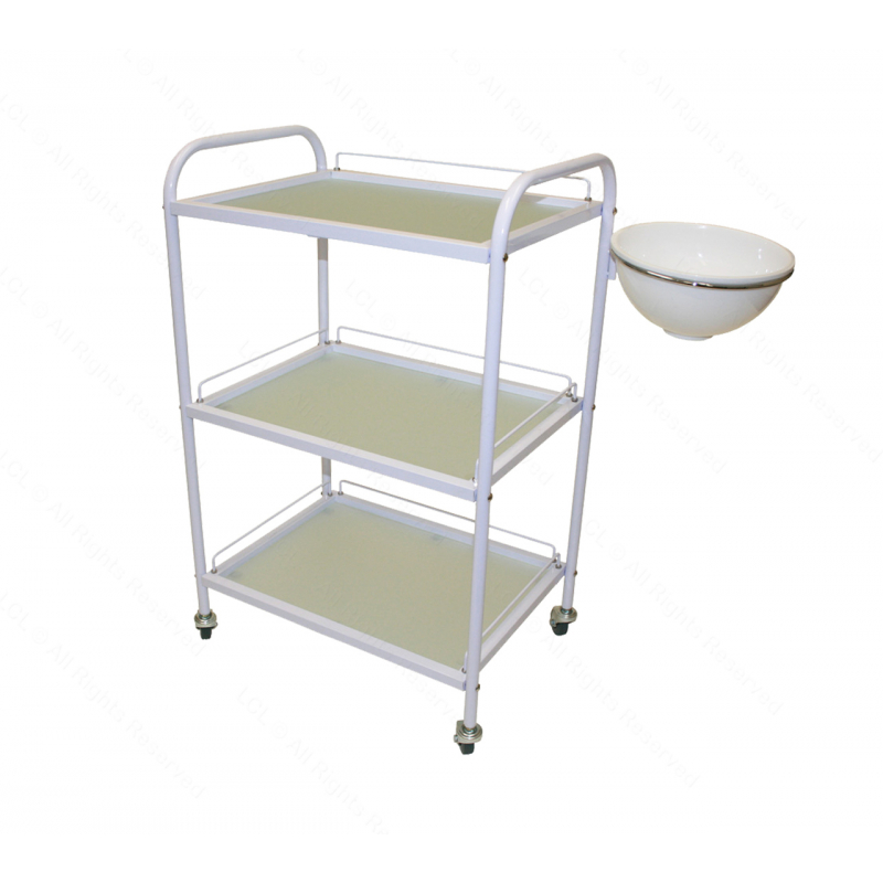 Este carro blanco de uso múltiple es muy robusto con un diseño elegante. Las rueditas lisas hacen que esto sea una adición invaluable a su salón, spa u hogar. El cuenco multiusos extraíble agrega otra función al carro.