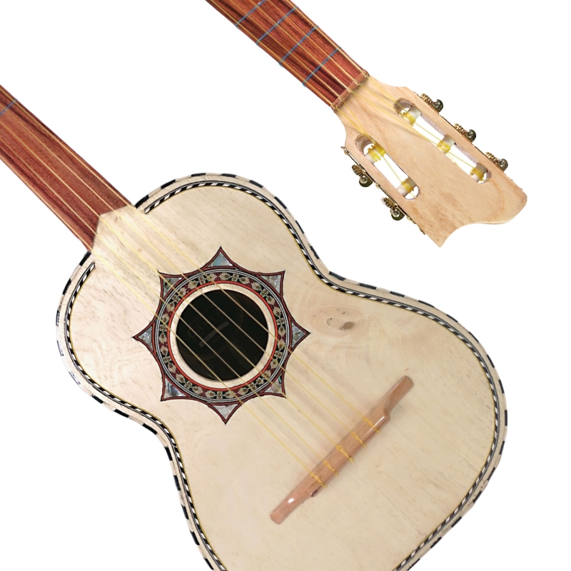 Fabricada con palo escrito, una madera conocida por su belleza y resonancia excepcionales, cada vihuela es única debido a las variaciones naturales en la madera. Estas variaciones no solo agregan carácter visual, sino que también influyen en el tono y la proyección del instrumento, creando una experiencia musical verdaderamente personalizada.