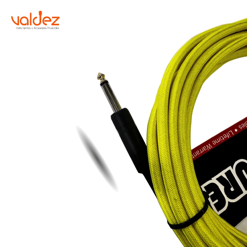 Este cable plug 6.3 mm a plug 6.3 mm en amarillo neón de 5.7 metros te ofrece una conexión confiable y duradera para tu equipo musical. Su llamativo color lo hace fácil de identificar y añade un toque de estilo a tu configuración. Con una longitud generosa, tendrás libertad de movimiento en el escenario o estudio. ¡Haz que tu música brille con este cable de alta calidad!