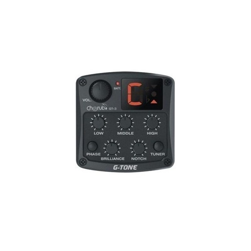 Pastilla con afinador cherub GT-3 microfono activo para guitarra/bajo electroacustico, con ecualizador de 3 bandas y afinador cromatico digital integrado. Equipar ademas controles brillantes y notch con lo que puedes obtener un sonido profecional modelado a tu gusto, ademas control phase para evitar molestos feedbacks.