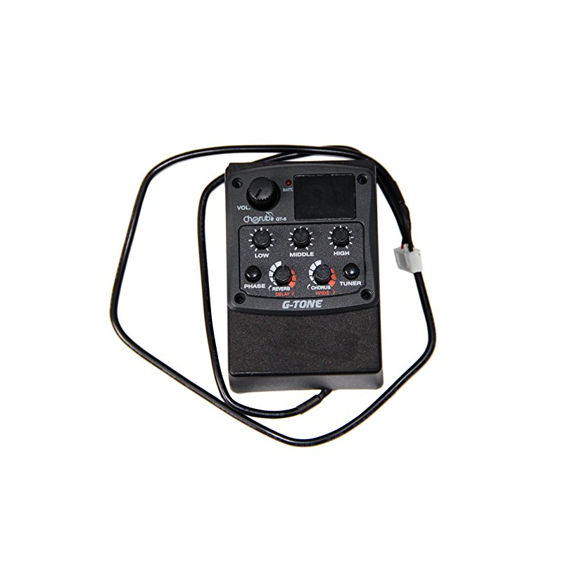 Con la función de fase y el sintonizador, reverb incorporado, retardo, chrous y efectos de ancho.