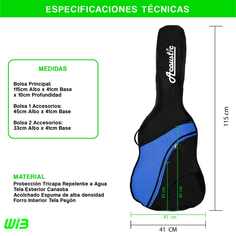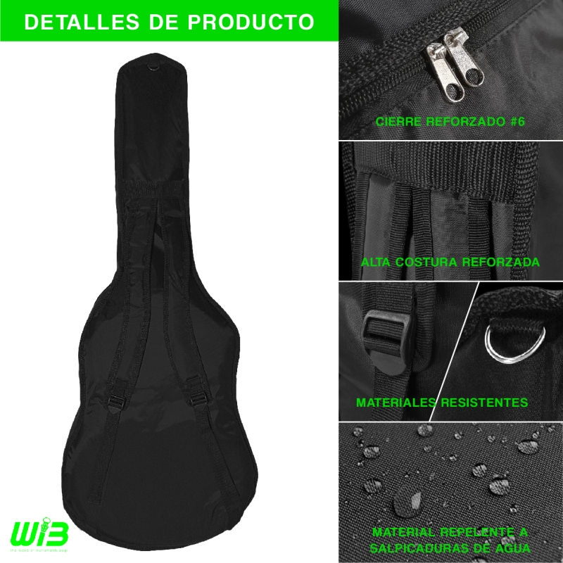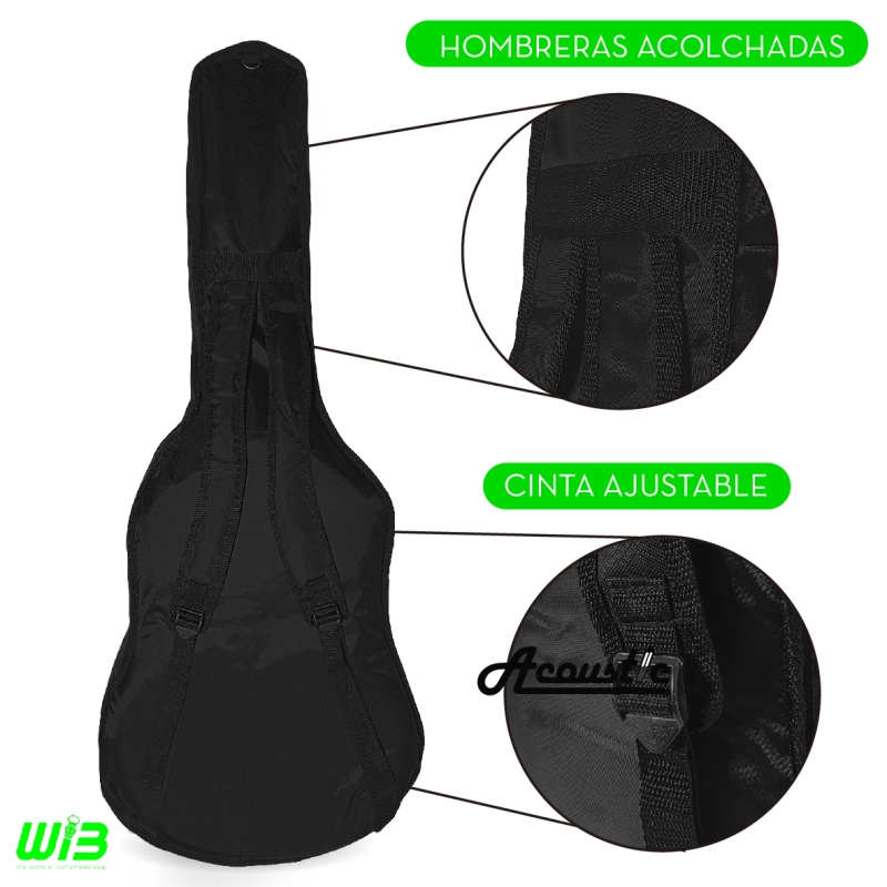 Funda de Guitarra Acustica, ideal para proteger tu guitarra de caídas leves, polvo, salpicaduras de agua o lluvias leves, protege tu guitarra con una de nuestras fundas hechas de una calidad premium pensado en músicos como tu.