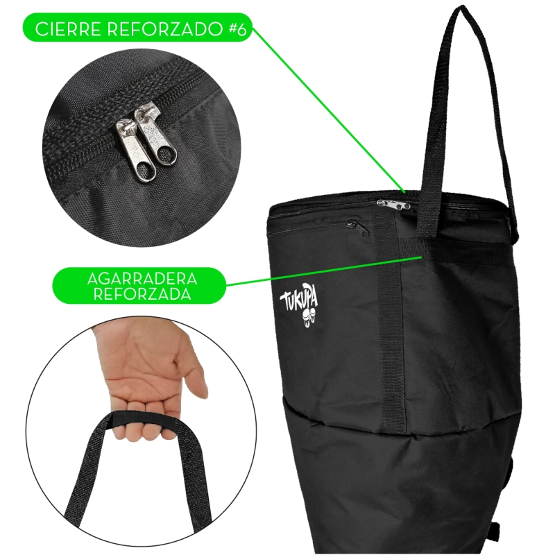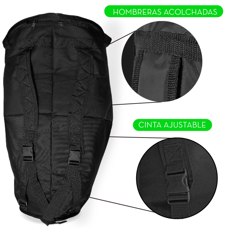 Lleva de forma segura tus congas,protege y transporta,esta funda esta diseñada para proteger de la mejor manera tus congas,repelente a salpicaduras de agua e incluso lluvias leves.