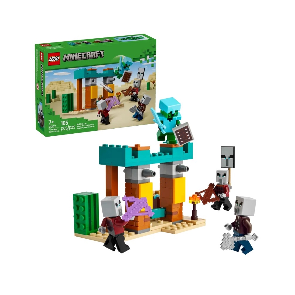 Este pequeño set LEGO® para niños y niñas a partir de 7 años reserva diversión a lo grande a los jugadores de Minecraft®. Con 4 figuras LEGO Minecraft, divertidas características y fieles accesorios, el set La Patrulla del Desierto de los Maldeanos (21267) es un juguete mini con acción maxi al estilo Minecraft.