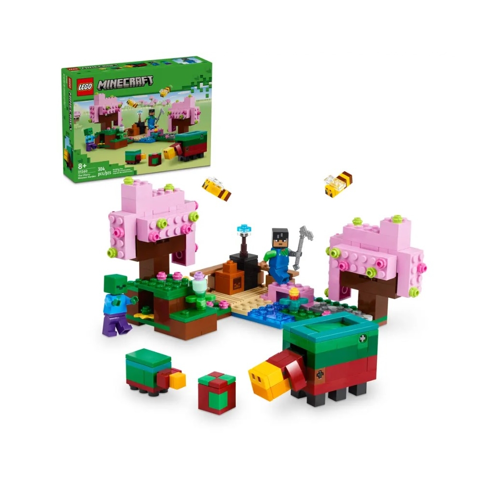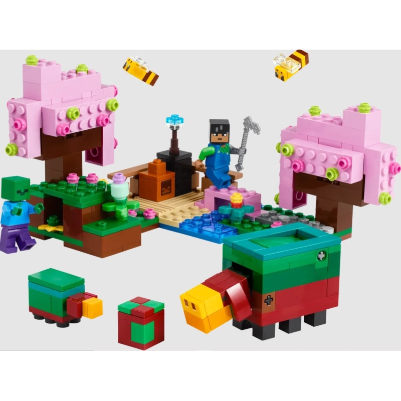 El juguete Jardín de Cerezos en Flor (21260), basado en el videojuego, es el primer set LEGO® que incluye figuras y características del bioma Cerezal Minecraft®. También es un fantástico regalo para jugadores de Minecraft o niños y niñas a partir de 8 años que disfrutan en la naturaleza, con los juegos de animales, ¡y enfrentándose a zombis!