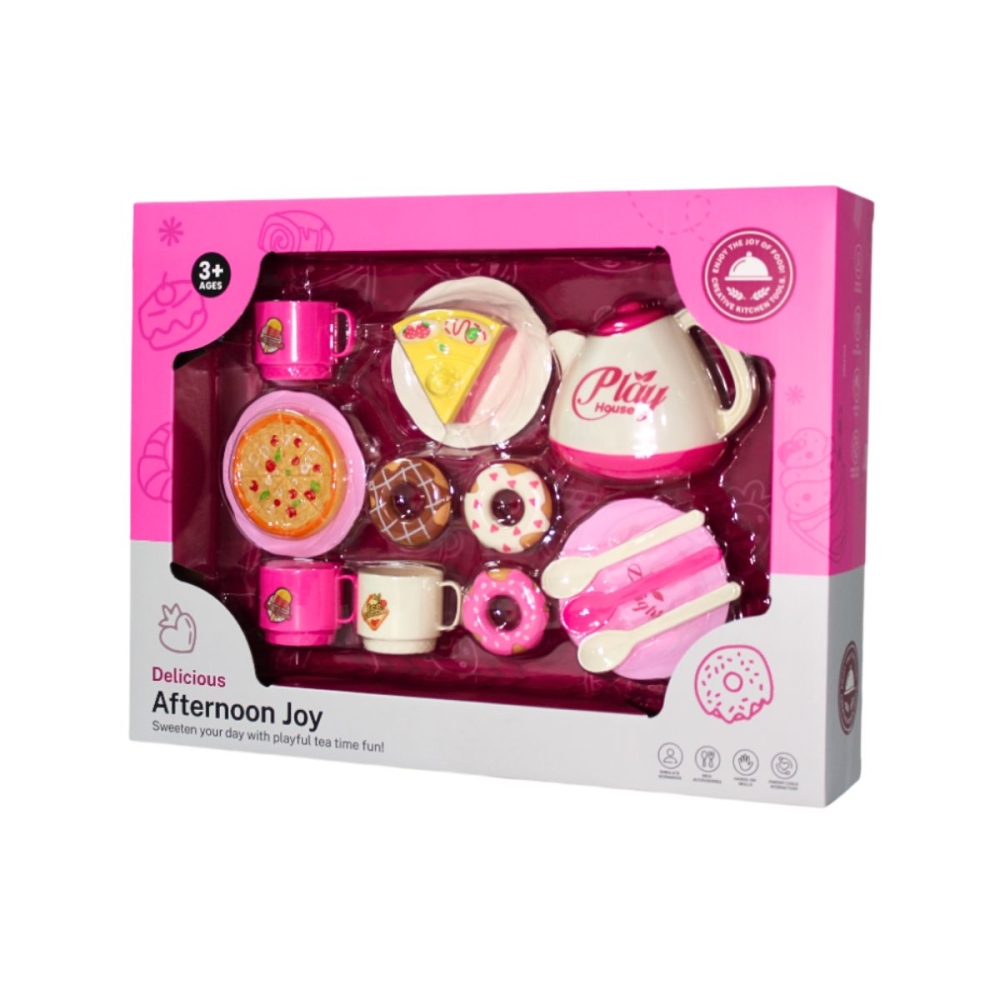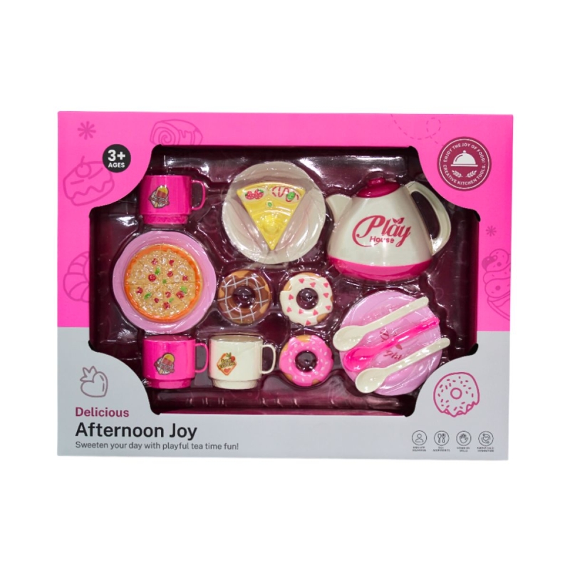 Realiza la fiesta de té más divertida y crea momentos inolvidables con este set de juego de té. Diseñado para pasar largas horas de diversión, contiene todo lo necesario para realizar una fiesta de té, tazas, platos, cucharitas, 1 tetera, postrecitos/comidita (de plástico) y disfrutar con amigas y/o familia. -Crea historias divertidas a partir del juego y así fomentar a la creatividad. -El tamaño de los accesorios son ideales para las manitas de las niñas, además de aportar a la motricidad. -Perfecto para beneficiar la interacción familiar.