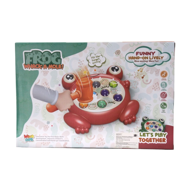 Prepárate para una tarde llena de risas y reflejos rápidos aplástando a las ranitas. Este juego dinámico e interactivo está inspirado en el tradicional juego Wack-A-Mole. Pon a prueba tu velocidad, coordinación y atención a cada novimiento de la rana y golpea antes de que salten de nuevo. -El movimiento de las ranas es aleatorio, por lo que debes ser rápido. -Contiene 2 pequeños mazos de plástico, ideales para jugar con amigos. -Estimula la concentración y el movimiento mano-ojo.