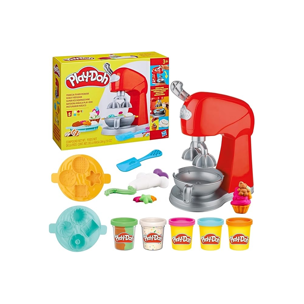 CREA COLORIDAS GOLOSINAS PLAY-DOH: Con la Batidora mágica Play-Doh de Kitchen Creations, los niños y las niñas pueden jugar, crear y decorar fácilmente 8 formas diferentes de tartas, pastelitos y galletas.
