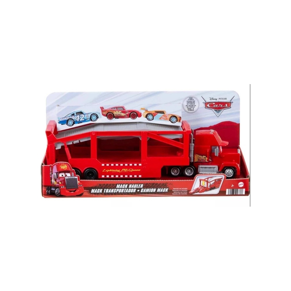 ¡Lleva la emoción de las pistas a casa con el increíble Mack Hauler de Disney Pixar Cars! Este espectacular camión transportador rojo, inspirado en el fiel compañero de Rayo McQueen, es perfecto para que los pequeños fanáticos recrean sus escenas favoritas de la película o inventen nuevas aventuras llenas de velocidad.