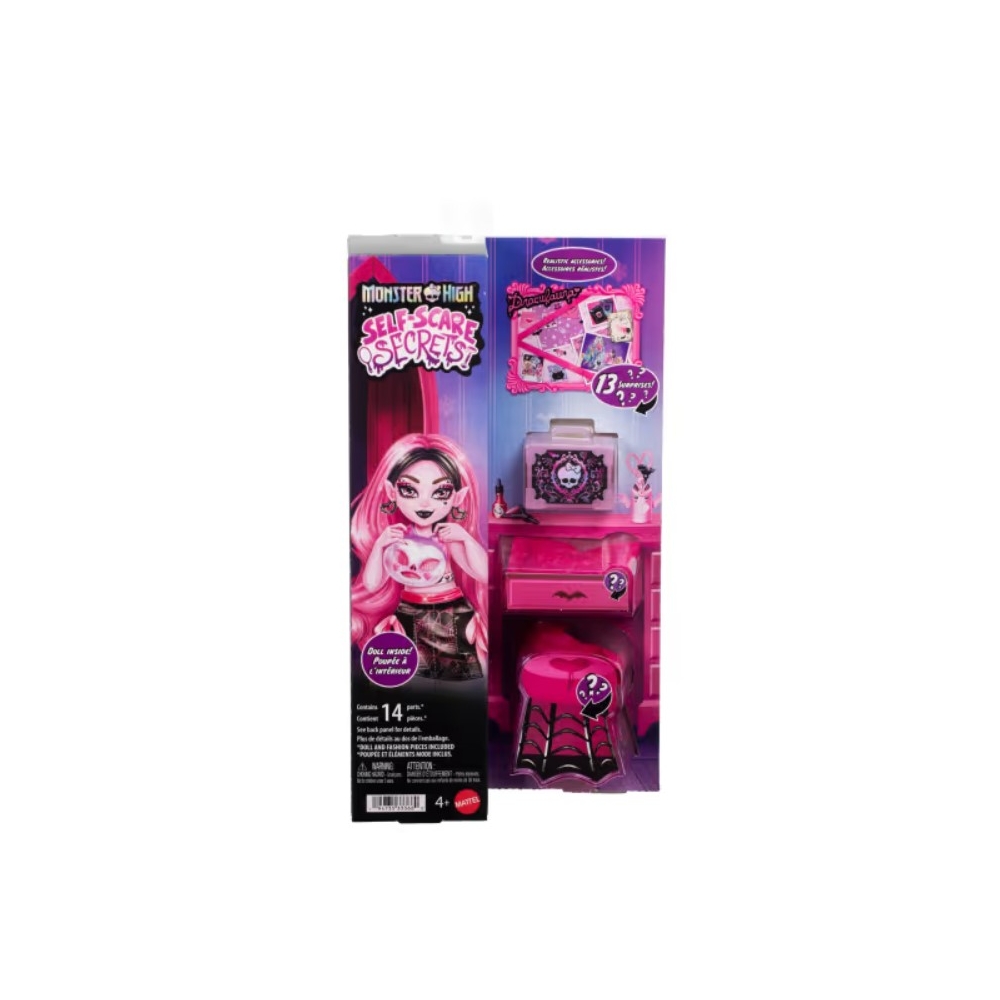 Prepara el escenario para una noche de susto relajante con las muñecas Monster High Self-Scare Secrets. Cada set incluye una muñeca y 13 sorpresas para recrear rituales de belleza ¡para aullar! y rutinas acogedoras. Abre las bolsas sorpresa una por una para revelarlas todas. Los accesorios son terroríficamente realistas, con muchos detalles y funciones interactivas que crean el ambiente para una narración aún más inmersiva durante el juego. A las niñas de 4 años en adelante les encantará descubrir el “mejor cripta-secreto” de autocuidado de cada ghoul. Cada uno se vende por separado y está sujeto a disponibilidad. Totalmente articuladas. Las muñecas no pueden mantenerse de pie por sí solas. Los colores y las decoraciones pueden variar.