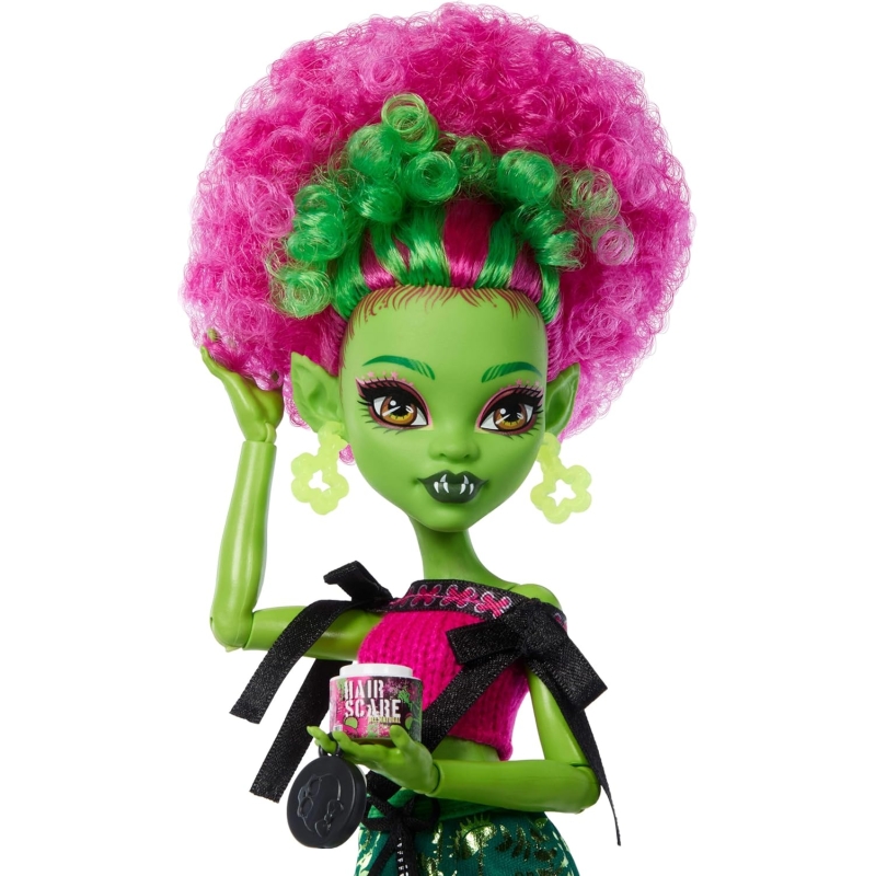 La muñeca Venus McFlytrap está lista para un tiempo de autosusto con su cómoda playera y falda de punto. Abrir bolsas misteriosas llenas de sorpresas di-vid para descubrir cómo a este monstruo vegetal le gusta relajarse.