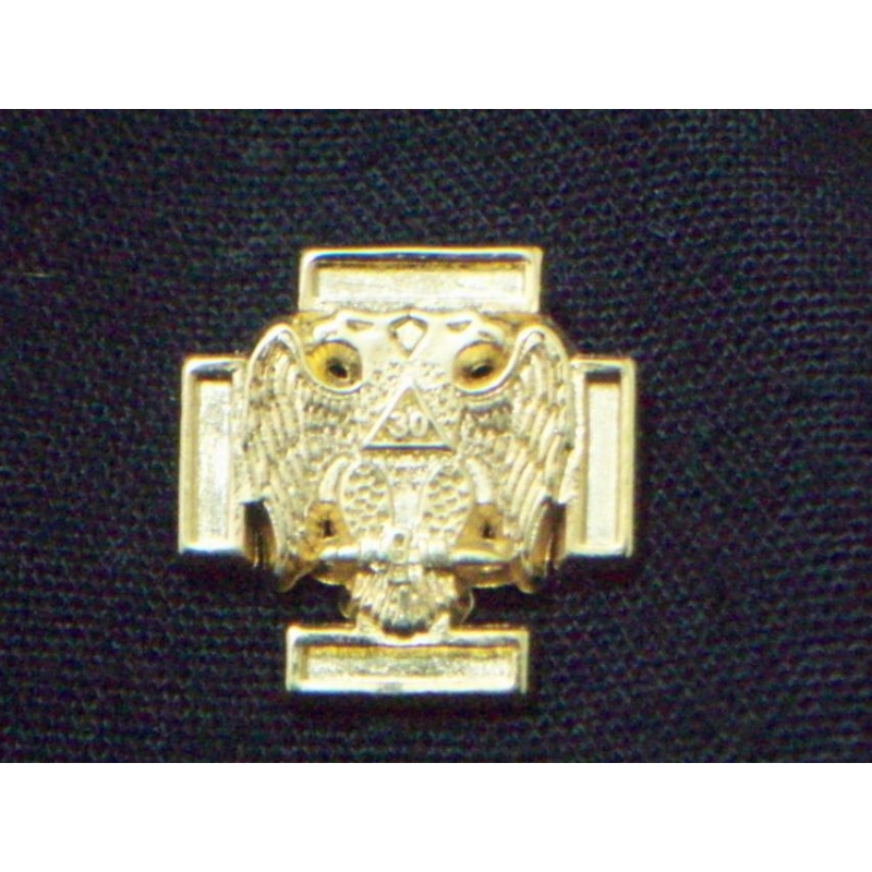 Hermosa Joya alusiva al Grado 30, elaborada en metal dorado, con toda la simbología propia del mismo.