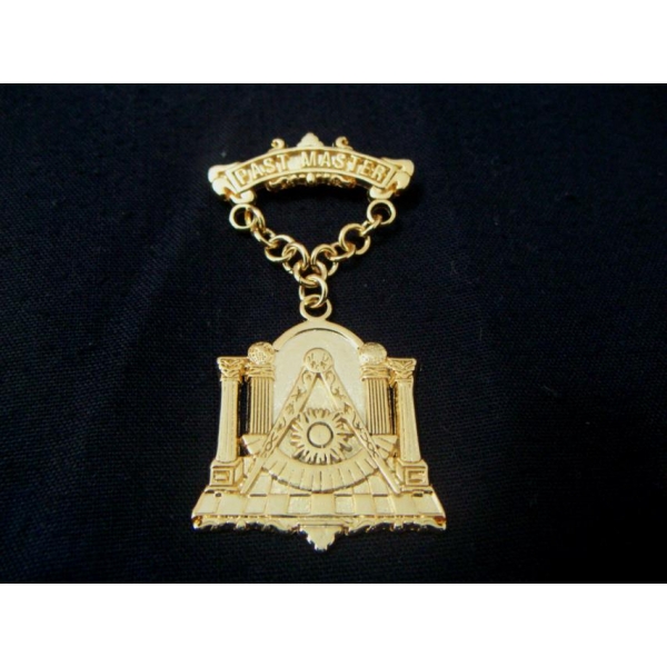 Hermosa medalla para Past Master elaborada en metal dorado.