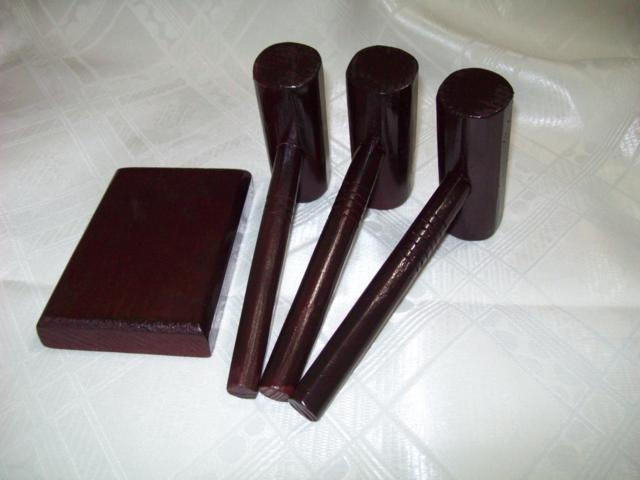 Juego de 3 malletes elaborados en mandera de pino, incluyen sus respectivas bases.