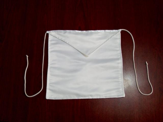 Hermoso Mandil para Lubetones, elaborado en fina tela de raso blanco.