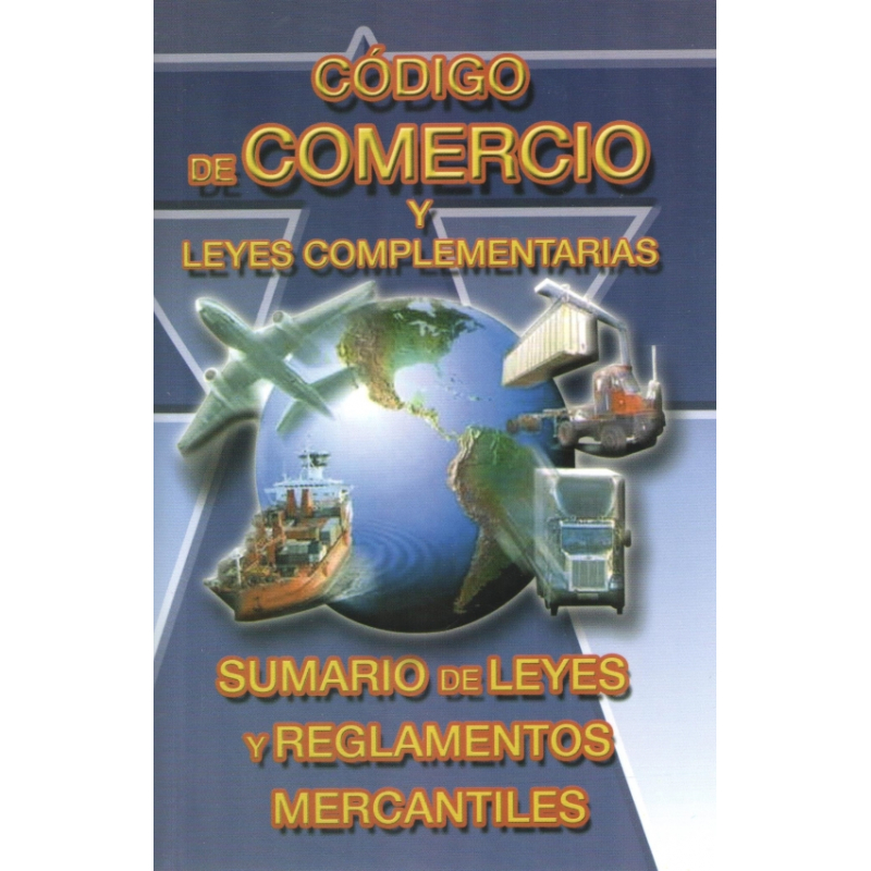 CÓDIGO DE COMERCIO LEYES Y REGLAMENTOS COMPLEMENTARIOS.ÍSBN978-607-7872-44-3. Ley General de Sociedades Mercantiles; Ley General de Títulos y Operaciones de Crédito; Ley Federal de Protección al Consumidor; Reglamento del Artículo 122 de la Ley Federal de Protección al Consumidor; Ley de Cámaras Empresariales y sus Confederaciones; Ley Federal de Competencia Económica; Reglamento de la Ley Federal de Competencia Económica; Reglamento Interior de la Comisión Federal de Competencia; Ley Federal de Correduría Pública; Reglamento de la Ley Federal de Correduría Pública; Ley de Concursos Mercantiles; Ley de Comercio Exterior; Reglamento de la Ley de Comercio Exterior; Ley Sobre Contrato de Seguro. Medidas 11.5 x 16.5 / 4” x 6”. Número de Páginas 806.