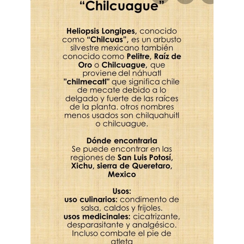 Chilcuague is one of the most active plants in Mexico, it has been considered important for its analgesic, anesthetic, antibacterial and antifungal power.