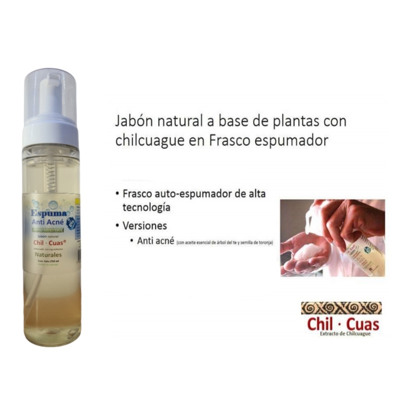 Jabón en espuma con extracto de chilcuague y otras plantas anti acné de 250ml.