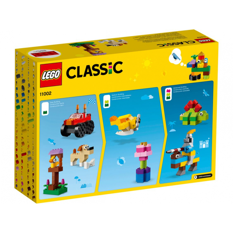 ¡Ninguna aventura pasa de moda con el set LEGO® Classic Ladrillos Básicos! Conoce a un caballero a caballo y a un encantador dinosaurio. Realiza increíbles acrobacias en un alucinante camión monstruo o atraviesa las nubes en un clásico avión de hélice. ¡Crea un simpático perro, un pájaro en su pajarera o cualquier otra cosa que puedas imaginar con estos vistosos ladrillos, ruedas y ojos LEGO de colores! Con los sets de construcción LEGO Classic puedes soñar, construir y jugar.