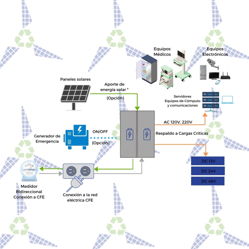 Interconexión al suministro de energía eléctrica y a banco de baterías