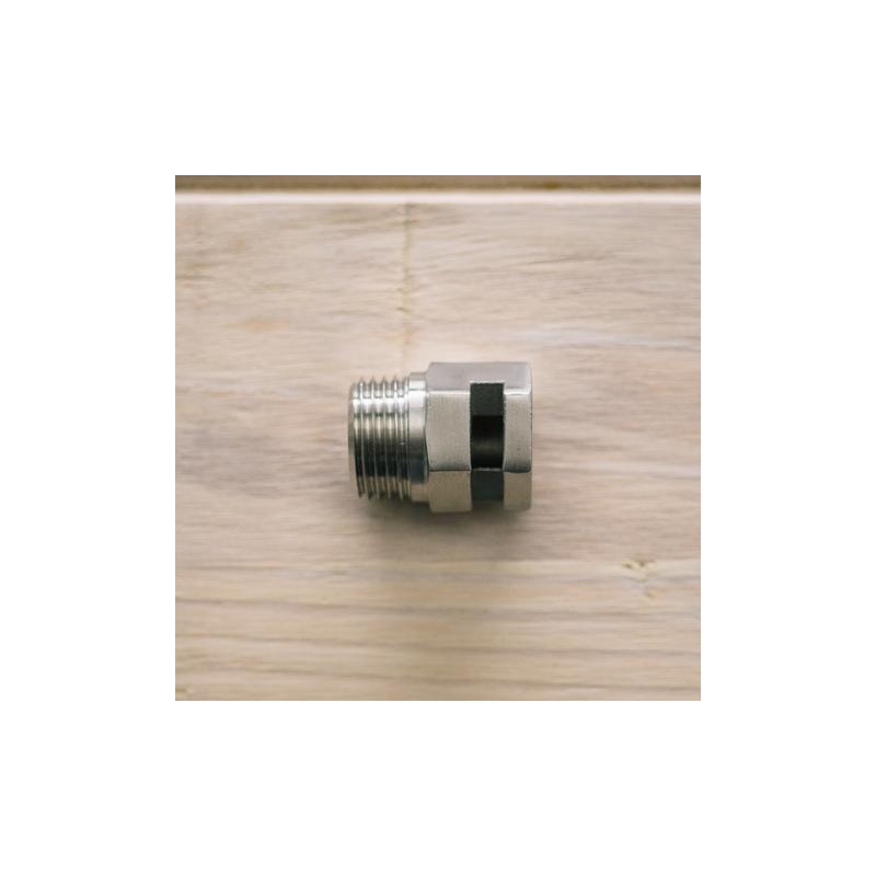 Ajustador de acero inoxidable de 1/2" MPT, crea una acción whirlpool. También encaja bien en el puerto del termometro de los hervidores Ss Brewtech.