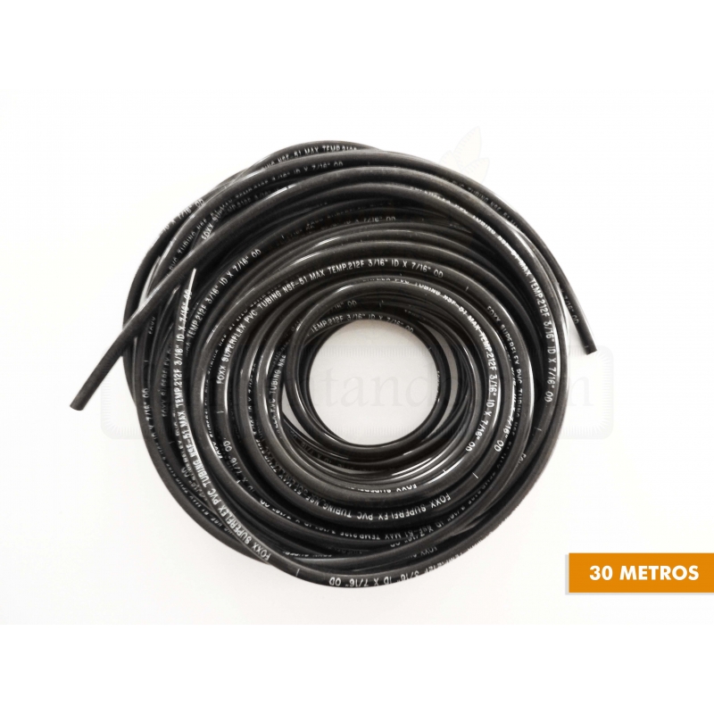 Manguera de PVC Negra para líquidos o Gas. Diametro interior 3/16, exterior 7/16. Se puede usar con el conector FXP006
