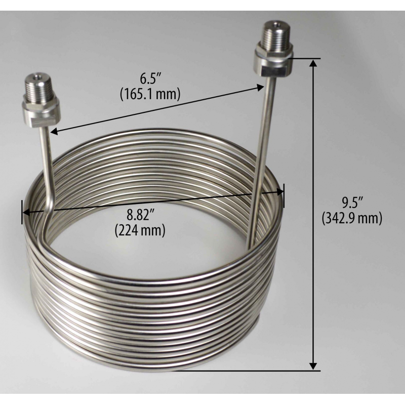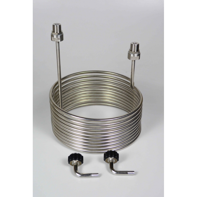 Enfriador chico en forma de serpentin de acero inoxidable 304.