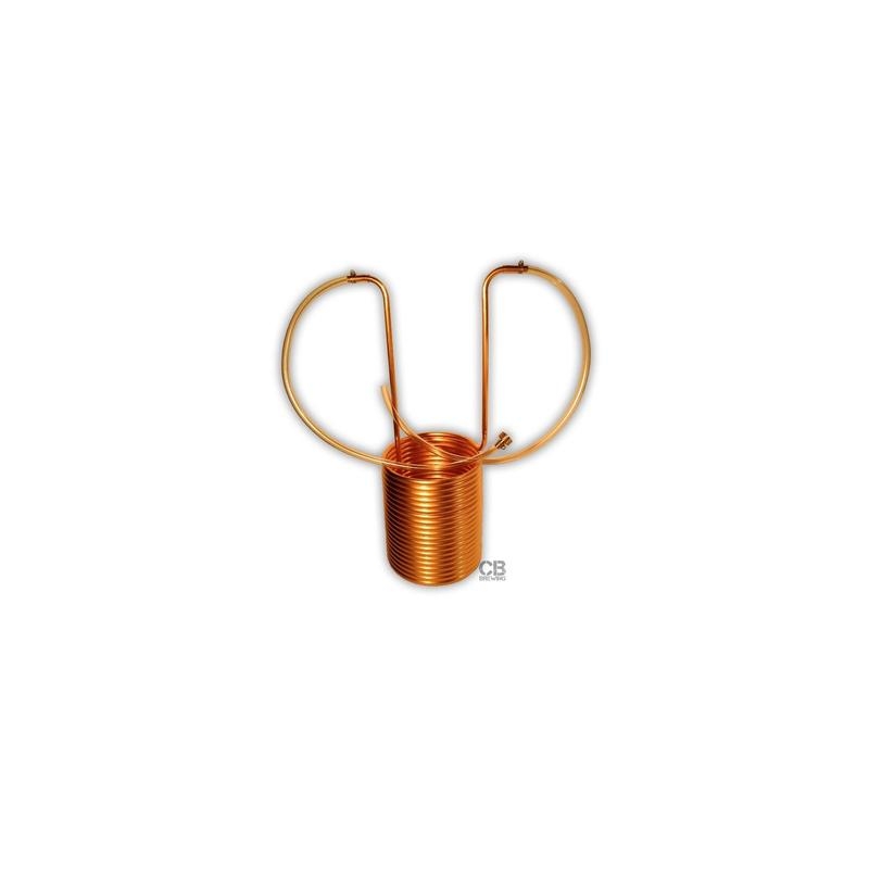 Está construida para adaptarse a un barril convertido o una olla de tamaño similar, destinada a lotes de más de cinco galones, pero enfriará un lote de cinco galones de ebullición a 75 grados en tan solo 5 minutos. *