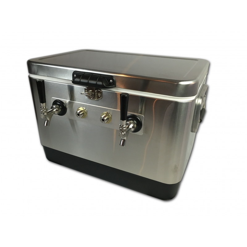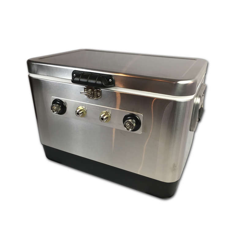 Esta línea de Jockey Box edición Bartender, tiene las entradas de líquidos en el mismo lado que los grifos.