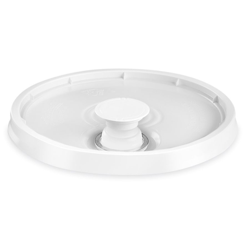 Tapa para cubeta de plastico con un vertedero que sirve como adaptador para el airlock, junto con el tapon de fermentador chico (BV002).