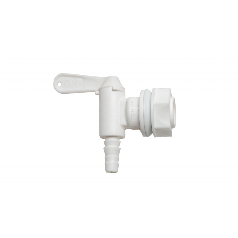 La llave de plástico es fácil de limpiar y cuenta con puas para unirla de manera segura a la manguera.
