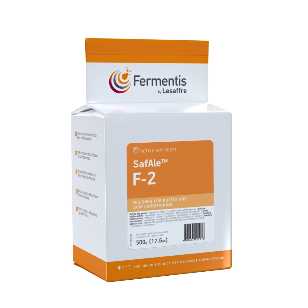SafAle™ F-2 ha sido específicamente seleccionada para fermentación secundaria en botellas y barriles. Esta levadura asimila muy bien azúcares simples, como la glucosa, fructosa, sacarosa y maltosa. No obstante, asimila pequeñas cantidades de maltotriosa, caracterizándose por ser aromá-ticamente neutra, respetando el perfil sensorial de la cerveza base.