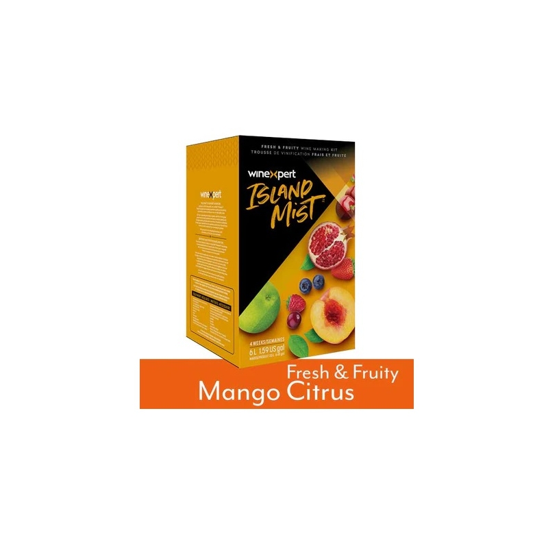 El kit Mango Citrus Island Mist ofrece un toque único en un sabroso manjar tropical. Grandes notas de jugoso mango maduro, naranja, pomelo y sabores de limón. Los vinos de frutas son un gran complemento para las barbacoas de verano, justo a tiempo para la temporada de patio.