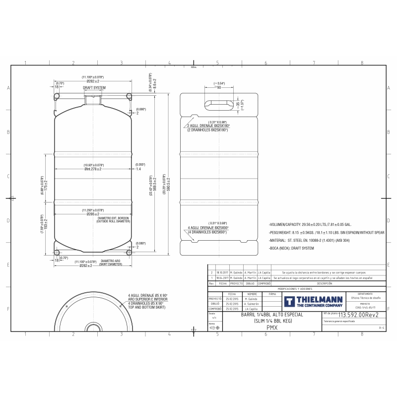 - Capacidad: 1/4 Barrel Slim (29.56 litros)