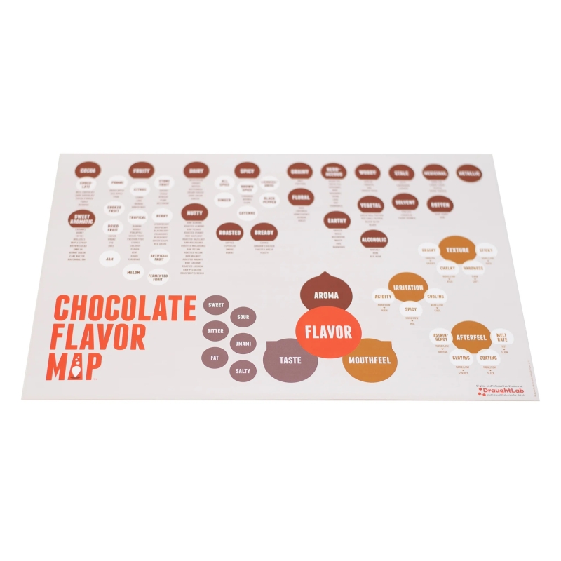Este mapa sirve como una ayuda intuitiva para la memoria para ayudar a identificar y describir detalladamente una amplia gama de posibles sabores de chocolate. Disponible en versión plana (adecuada para enmarcar o montar) o plegada (compacta y portátil).