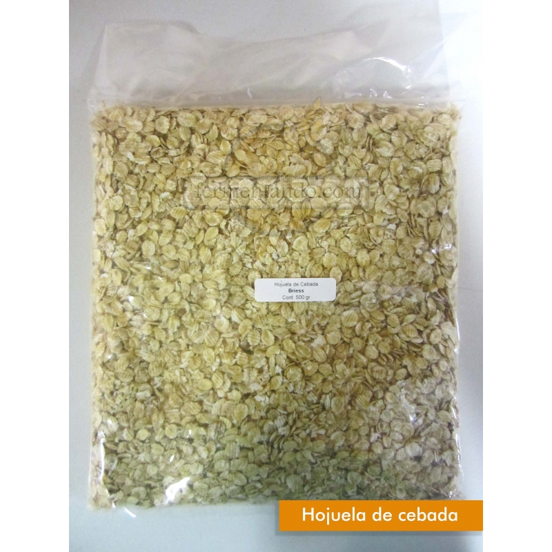 | Las hojuelas de cebada son utlizadas como un agregado en cerveza todo grano para producir una cerveza con acabado color mas claro sin disminuir la densidad original. Se puede utilizar en lugar de maiz como un agregado para eliminar el sabor a maiz de la cerveza terminada. |