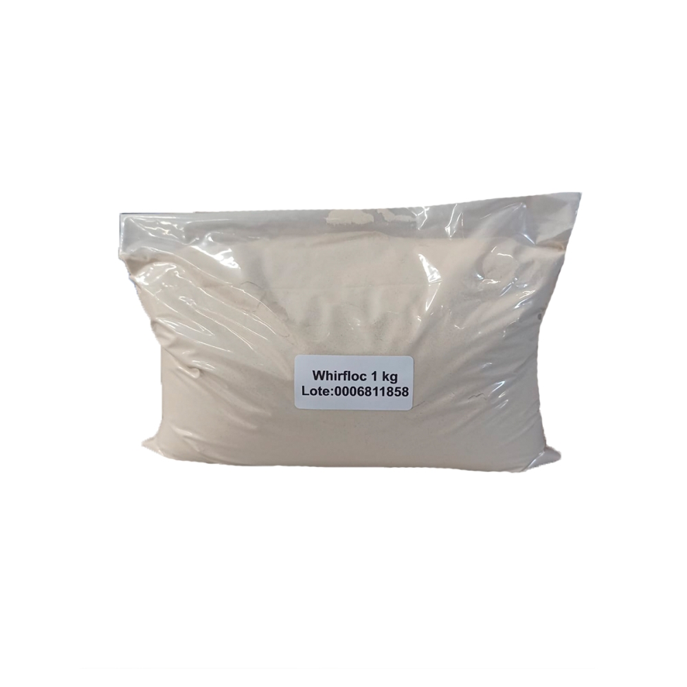 Modo de uso: Disolver el whirlfloc muy bien en agua fría, e inmediatamente agregarlo al mosto hirviendo 10 minutos antes de apagar el hervor. No exceder este tiempo ni las dosificaciones.