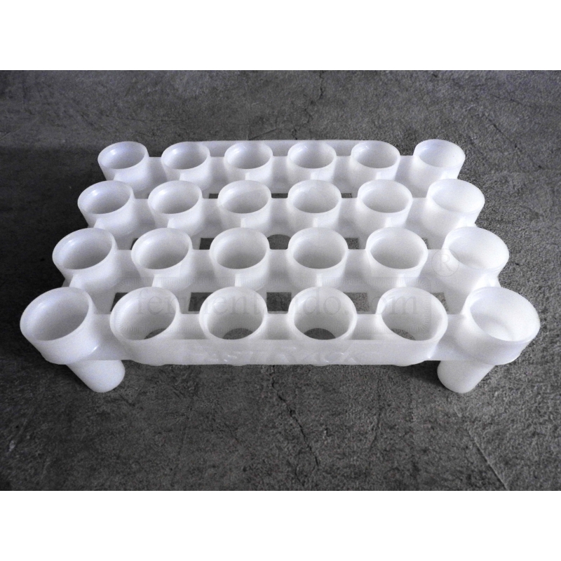 Este escurridor o rack para botellas de 12 onzas o 355ml ahorra muchÃsimo espacio. Es de plástico rÃgido de muy buena calidad. Recomendado ampliamente.