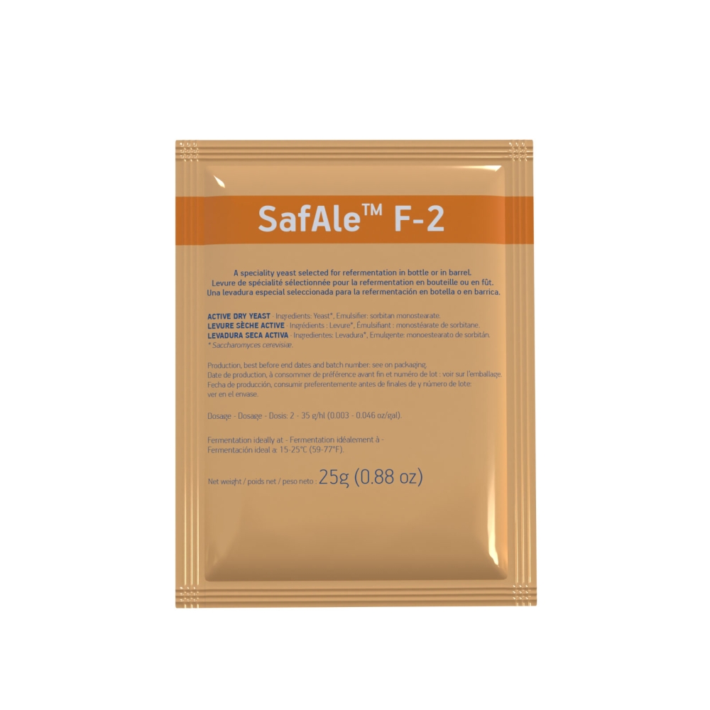 SafAle F-2 ha sido específicamente seleccionada para fermentación secundaria en botellas y barriles. Esta levadura asimila muy bien azúcares simples, como la glucosa, fructosa, sacarosa y maltosa. No obstante, asimila pequeñas cantidades de maltotriosa, caracterizándose por ser aromá-ticamente neutra, respetando el perfil sensorial de la cerveza base.