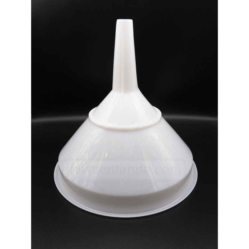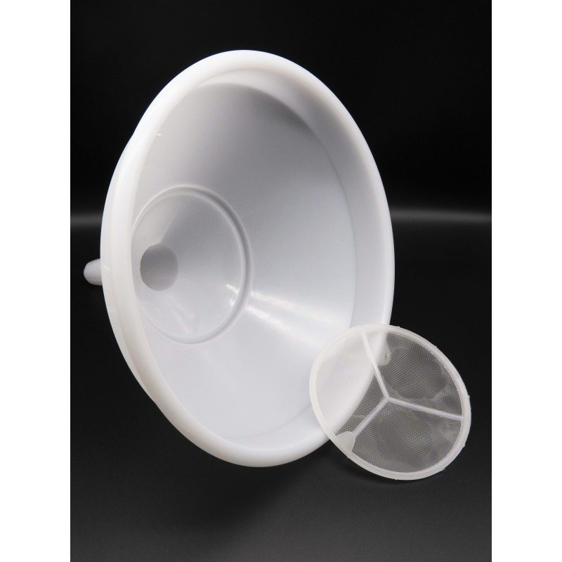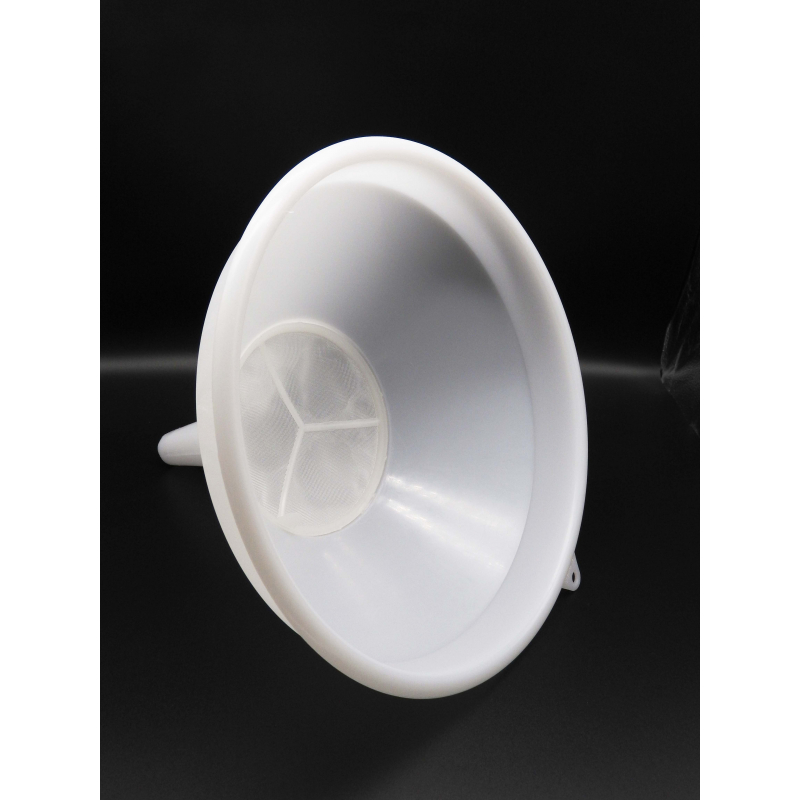 Embudo de plástico de 30 cm de diámetro, con un filtro. Ideal para colar el mosto antes de fermentar.
