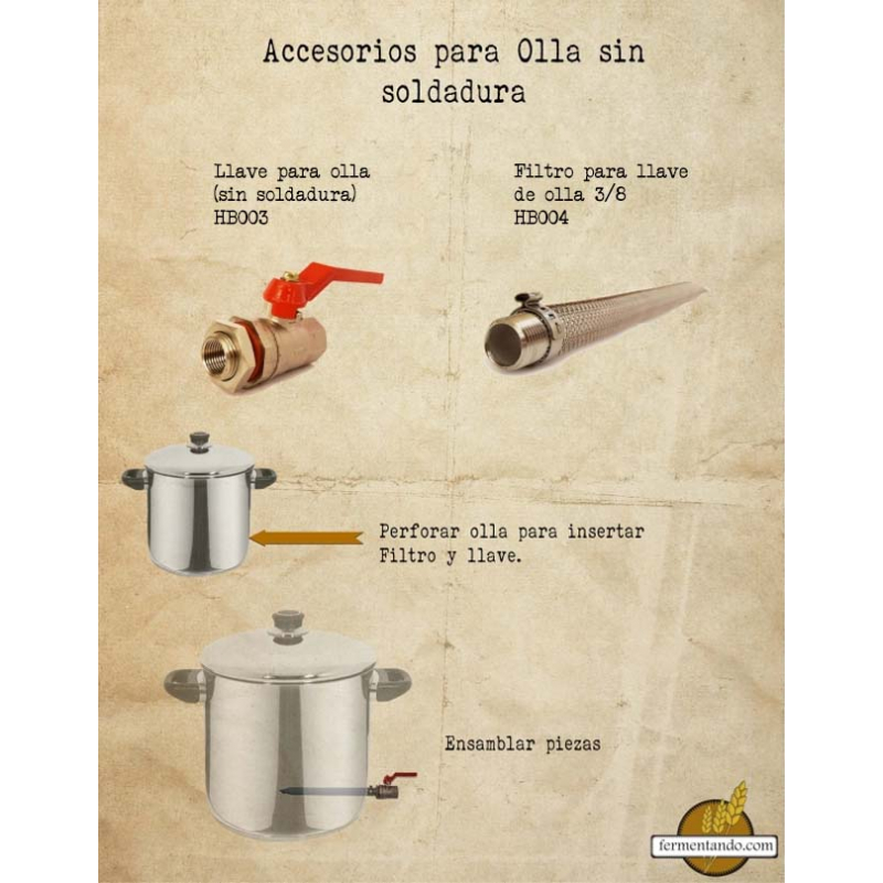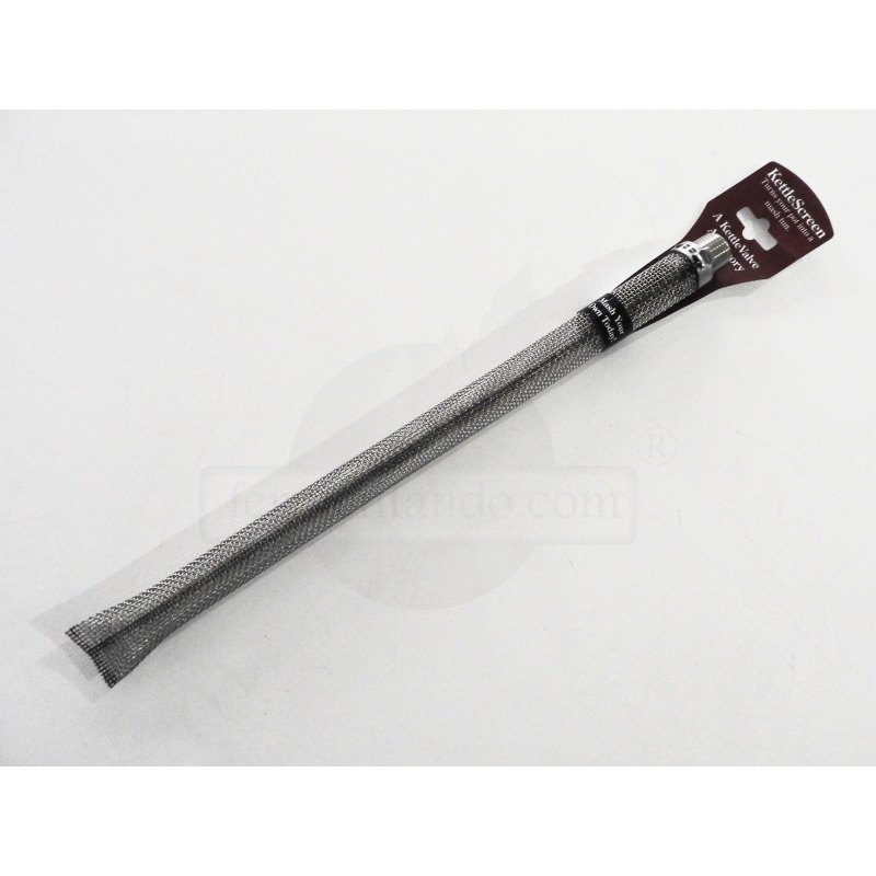 Tubo de malla en acero que reemplaza el fondo falso en una olla para el filtrando de lúpulo o la clarificación del mosto. La longitud total es de 12.5 pulgadas; rosca con conexión macho de 1/2" conecta al enfriador o a la olla.