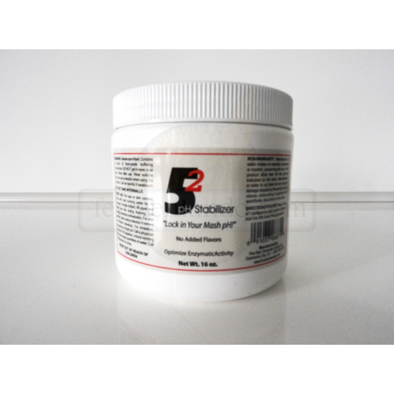 Con este estabilizador logrará alcanzar un pH de 5.2 en el agua sin importar el pH original. Es seguro y no añadirá ningún sabor en su cerveza. Este estabilizador provee consistencia en el pH sin importar la condición del agua, pero se obtendrá mejor resultado si se trabaja con agua caliente.