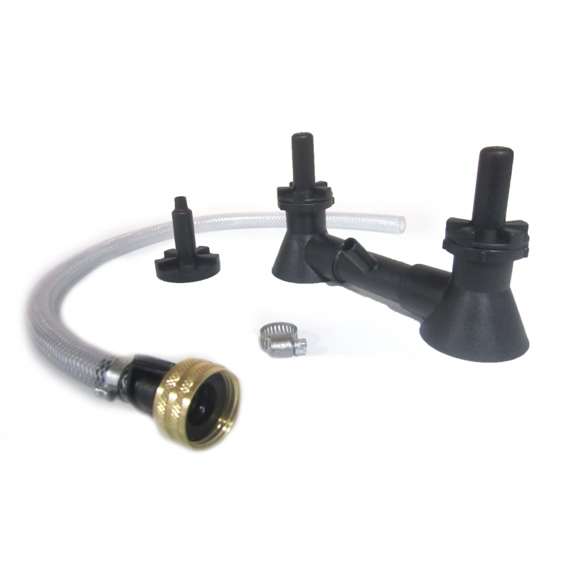 Esta lavadora de botellas, al conectarse al grifo del agua permite el lavado de dos botellas a la vez.