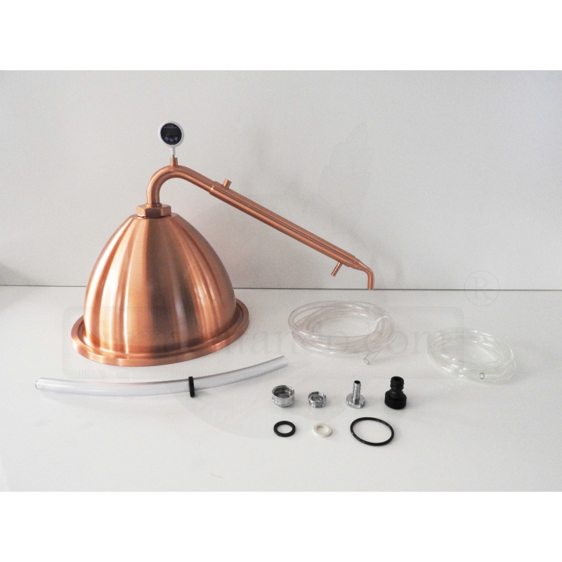 El condensador de alambique conserva el sabor en lugar de destilarlo por reflujo. Este viene con un termómetro, un tubo y un adaptador de grifo.