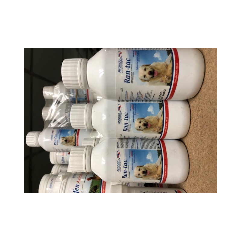 Oral ranitidine for use in canines and felines.